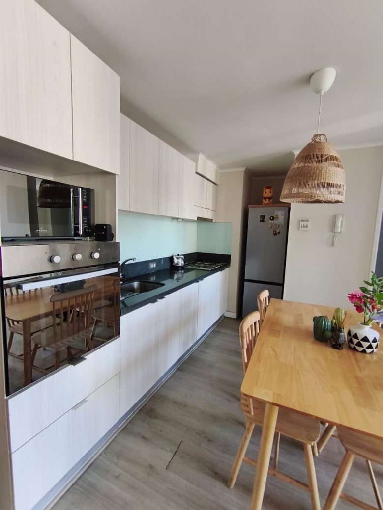 ¡Descubre tu nuevo hogar en Macul! Este acogedor departamento está a la venta por 3150 U.F. y te ofrece una ubicación privilegiada en la comuna de Macul, conocida por su excelente conectividad y calidad de vida. Con 41 m² de construcción y 46 m² de superficie total, este espacio es perfecto para quienes buscan un lugar cómodo y bien ubicado. Situado cerca de Departamental, tendrás acceso rápido a servicios, transporte público y áreas recreativas. El departamento cuenta con dos privados bien distribuidos, ideales para dormitorios u oficinas personales, además de un baño completo. La orientación del departamento permite aprovechar la luz natural durante todo el día. - Seguridad: Incluye seguridad para tu tranquilidad. - Comodidades al aire libre: Disfruta de tu propio balcón privado. - Espacios interiores: Cocina equipada, comedor y sala de estar amplios. - Accesibilidad: Edificio con ascensor. - Servicios adicionales: Lavandería común disponible. - Recreación: Salón de eventos y sala multiusos para tus reuniones o actividades sociales. Vivir en Macul te brinda una comunidad dinámica con parques, centros culturales y una vibrante vida urbana. ¡No pierdas la oportunidad de hacer este encantador departamento tu nuevo hogar!